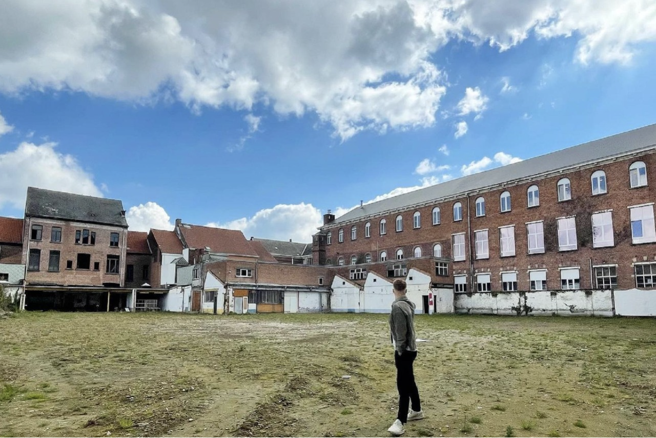 Die grote buitenruimte ontstond na de sloop van de productiehal van de voormalige textielfabriek De Poortere. De plek zit nu al enkele jaren in de portefeuille van Monumento. “Ateliers, vintage showrooms, repetitieruimtes, opnames voor televisieprogramma’s, evenementen van d’Academies… We hebben hier al van alles gehad en sommige dingen zijn er nog steeds. De woningen zijn bezet, maar in de muziekschool staat 80 procent leeg”, zegt Staessens. Dat komt omdat in dat grote gebouw pas recent de elektriciteit en nutsvoorzieningen in orde zijn gebracht. Een tiental kunstenaars en muzikanten maken van de plek gebruik, maar met een sporthal, zolder, oude klaslokalen en zo meer is er nog genoeg ruimte vrij. “Ook de grote buitenruimte is beschikbaar. Alles kan, hoe creatiever, hoe beter. Ateliers, een zomerbar, een klimmuur, een stadscamping,… Maar ook start-ups zijn welkom.”